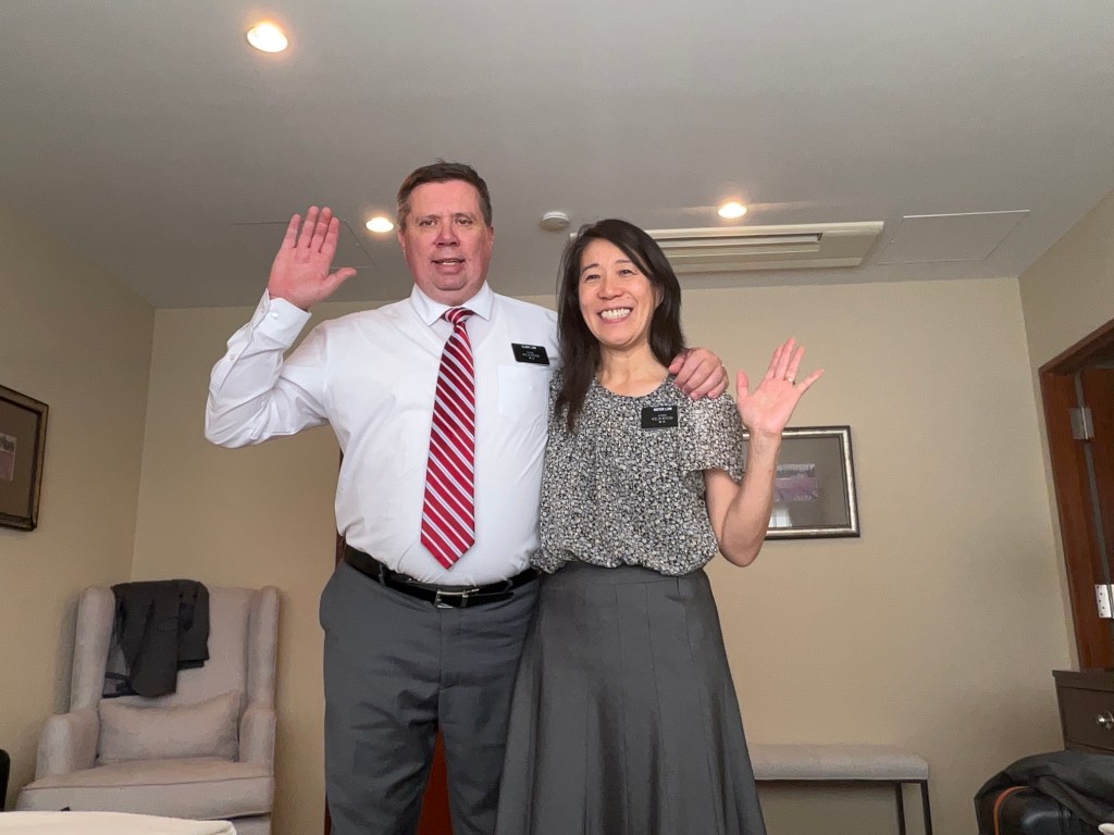 From that point on, things happened very quickly. Within one hour we had travel plans booked. We were scheduled to fly that next Monday morning. We had emergency meetings with our mission president in Tokyo, so he could prepare to to have someone at the airport when we arrive and we also had to work with our mission president at the HQ mission to hand off our assignments, security passes, and flophouse apartment keys. On Friday night, Kate and Sam dropped by to see us one last time and then on Saturday, Jacob, Jessica, Maddy and Randy all dropped by with our amazing grandkids to have a few minutes together. Then we packed. On Monday morning at 4am, our wonderful son Clint drove us to the airport. Fourteen hours later, we were in the mission home in Kichijoji, eating dinner and getting trained by the president and his wife.