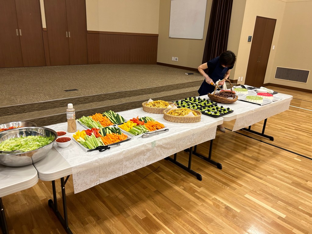 After the meeting, the Relief Society sisters prepared an amazing lunch for all the missionaries. It must have taken them days to put together. Of course, the young missionaries were like a hoard of locusts. They inhaled it all in minutes. We are continually amazed and grateful for the kindness of our Japanese brothers and sisters here. They quietly serve so well and so graciously.