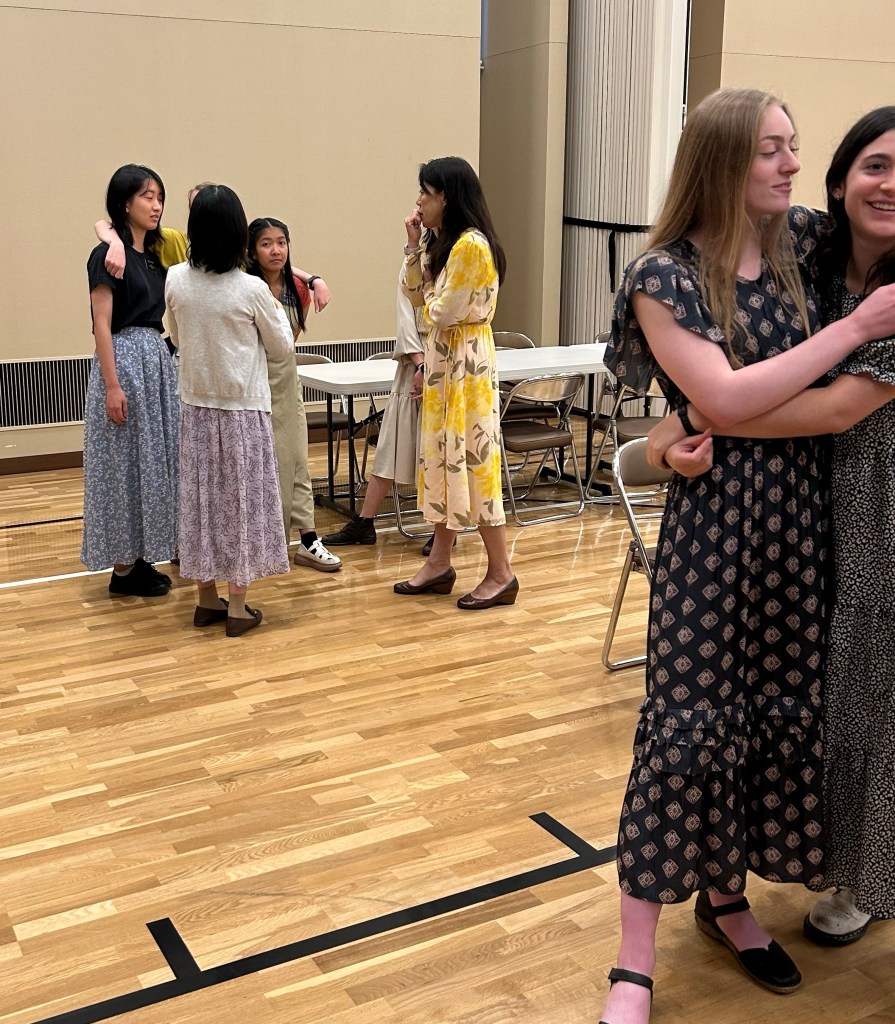 After class every Friday, we have a “gathering time” where they can hang out, play games, and chat. We also feed them snacks. Tonight during the gathering, we had one sister who is leaving on a mission next week and so the entire group stood in a circle and sang to her. Holy cow, that moment really caught us off guard. We didn’t expect the powerful spirit we felt as they sang. Both of us were in tears. Yet these young people acted as if it was a normal thing to them.
