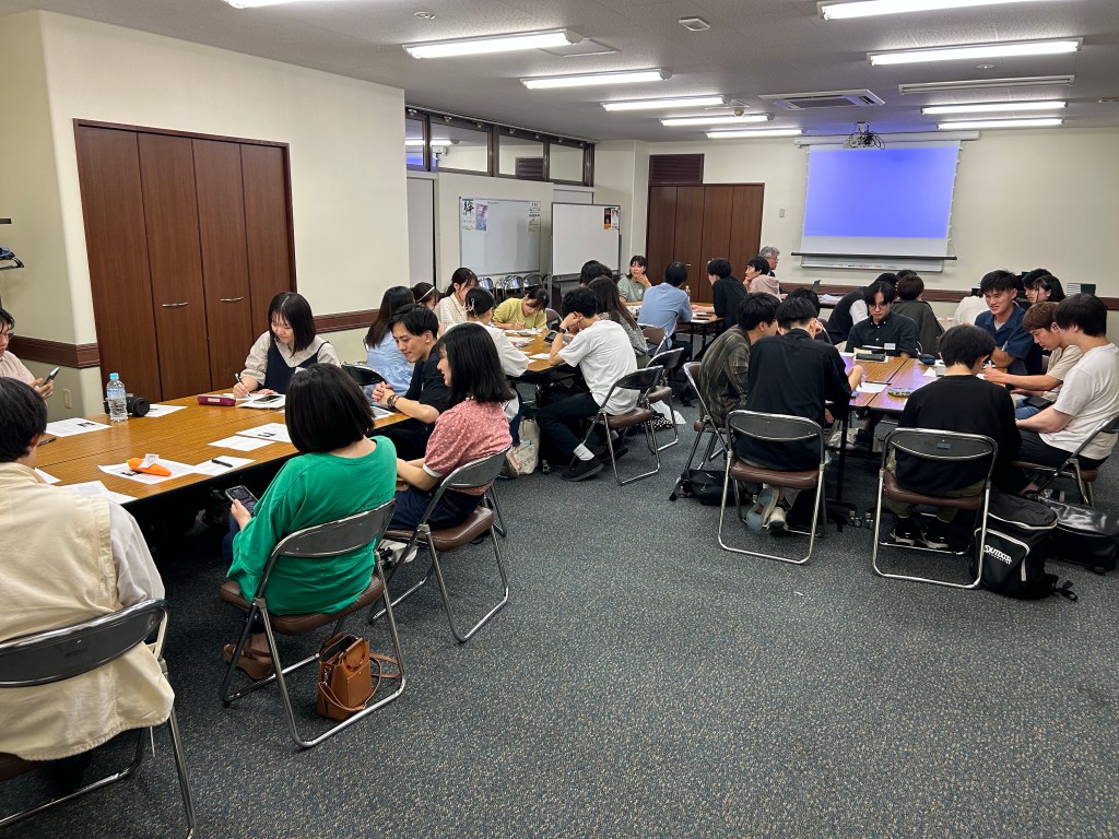 On Friday nights we go to institute class in the Shibuya building. Tonight there were forty young people in attendance. The room was packed and some had to stand because there was nowhere to sit. Some had come from far away. We had visitors from Hokkaido, Hiroshima, Nagoya and Ehime on Shikoku. We’ve learned they come to Tokyo by themselves to attend the temple, then come to institute here and meet people their own age.