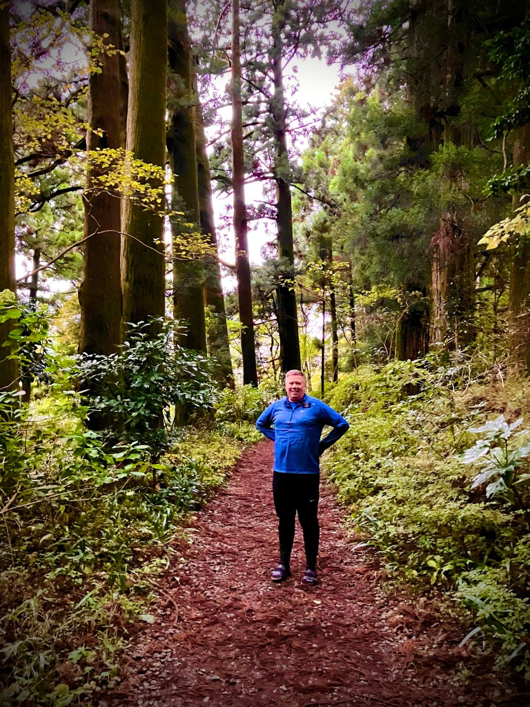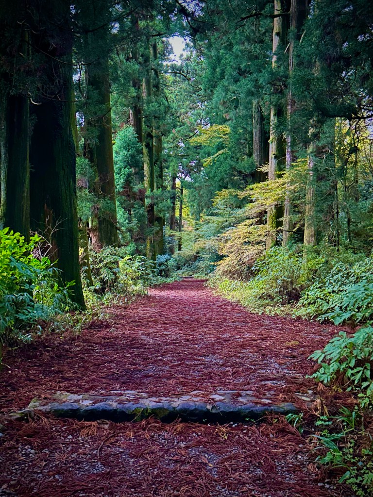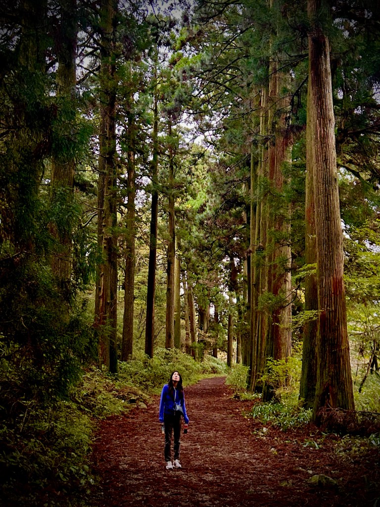 Yesterday, we’d had enough of concrete and high rise buildings, so we took a day trip to Hakone. Here’s Sister Low standing on the Tokaido Road in Hakone. The Tokaido Road is an ancient highway that connected Tokyo to Kyoto. It’s as old as the road to Damascus. Most of it’s gone now, but this part in Hakone remains. The ancient cedar trees you see were planted by the Tokugawa Shogun government to give shade to the travelers. They’re over 380 years old.