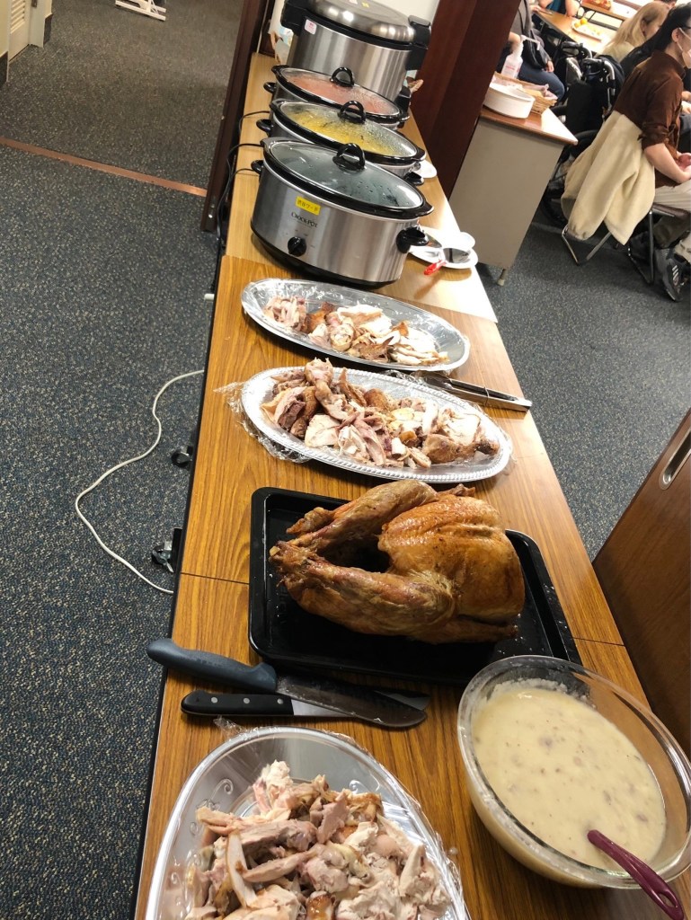 It was a traditional thanksgiving dinner that most had never eaten before: turkey, mashed potatoes, gravy, and pumpkin pie. The part that wasn’t traditional was that everyone ate with chopsticks.