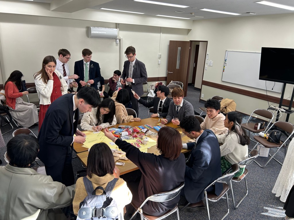 We had about 40 people come to Family Home Evening. At least five were nonmember friends. President Murakami and his wife Aki also came, mainly because President didn’t want to miss out on the soup. They were amazed at the crowd and the activity. We played games and chatted and laughed a lot.
