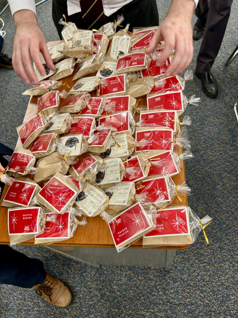 The day after the Machida program was Sunday, Christmas Eve. This was a big day for us that we planned for many weeks. It required two trips to Costco and we’re grateful to Sister Node for driving us there. We started cooking Saturday night as soon as we got home from the program. Elder Low ended up staying up through the whole night, cooking.