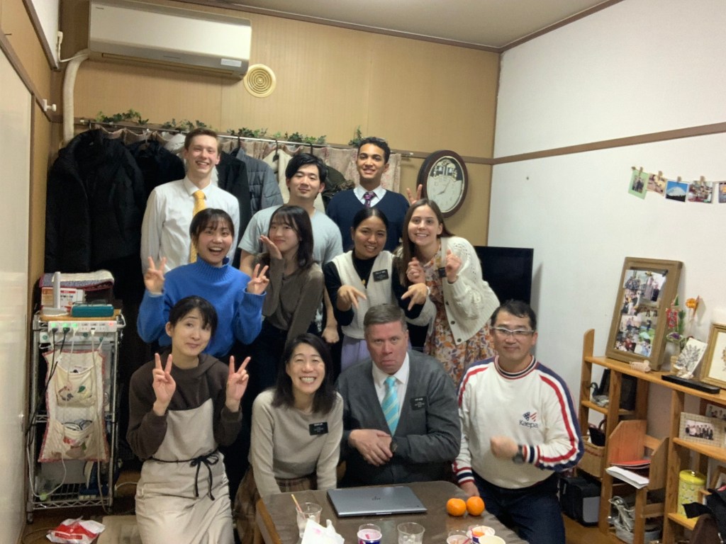 The New Year holiday is the ‘big’ holiday in Japan and we did have some fun. We have a young member in our branch who invited us to be with her family on New Years Eve. It’s an annual tradition for her family to have as many missionaries as will fit into their humble apartment every New Years Eve. Then they eat an amazing meal all together. They made sukiyaki with lots of steak and fresh vegetables, along with ice cream with Pop Rocks in it. We all stuffed ourselves and laughed a lot. We realize what a sacrifice it is for this wonderful family to give up the biggest holiday of the year to serve the missionaries. We are grateful.