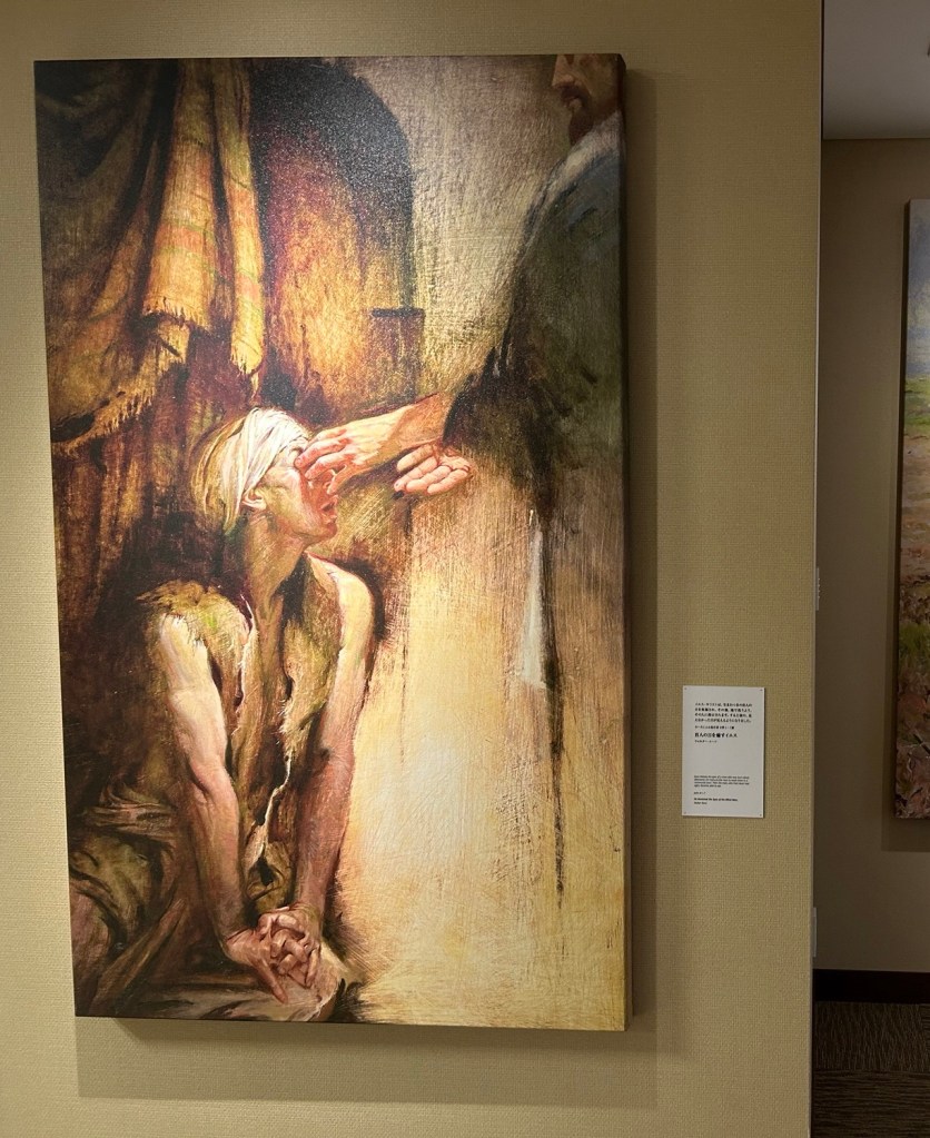 Then we had a long talk. He had a lot of questions. We could tell he is really struggling in life. At one point, Sister Low took him to see a painting of the Savior healing a blind man. The painting is by Walter Rane.