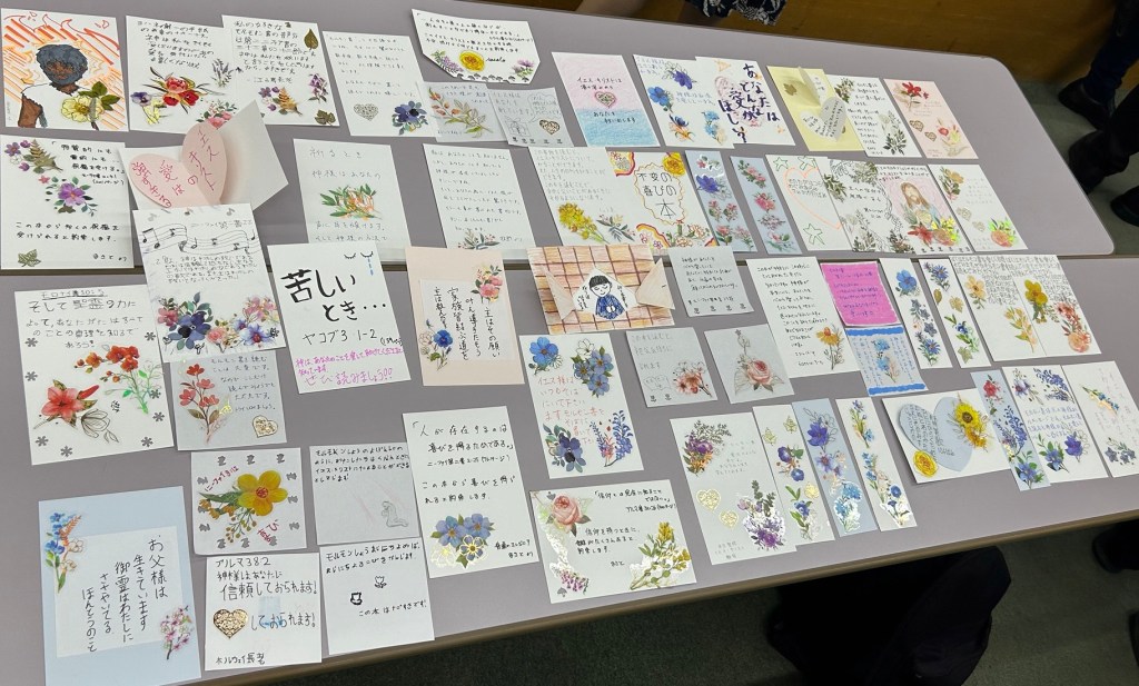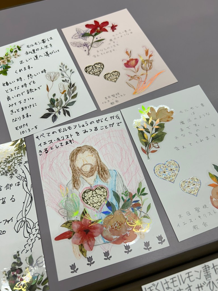 We put our heads together for a bit and came up with the idea of an arts and crafts activity, where we would make cards and write our testimonies on them and give them to missionaries. The missionaries could then insert the card into a Book of Mormon when they hand one out.