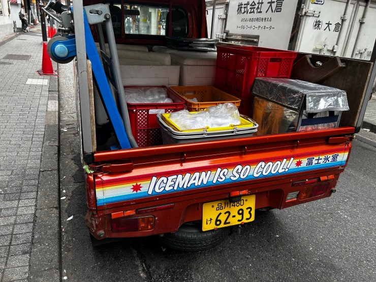 Handmade ice is a thing here. It’s usually outsourced to experts and delivered to the restaurants every day. In a truck like this: