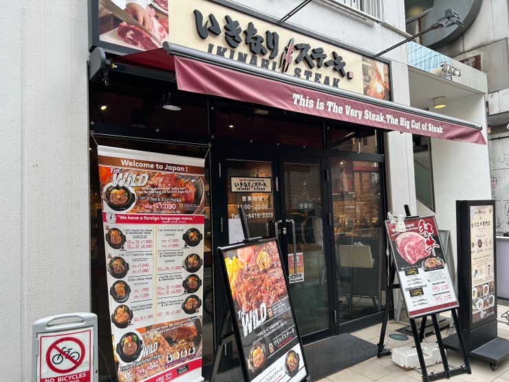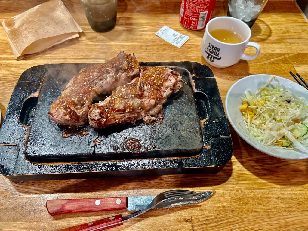 Ikinari Steak. A tiny shop that can seat maybe 20 people. It’s across the street from Outback Steakhouse, which is meh compared to this place. This is the very steak, the big cut of steak.