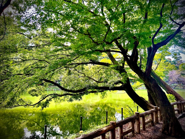 Then we walked over the to the gorgeous Inokashira Park, found a quiet spot, and sat on a bench under a 100 year old momiji maple tree by the pond and ate them.