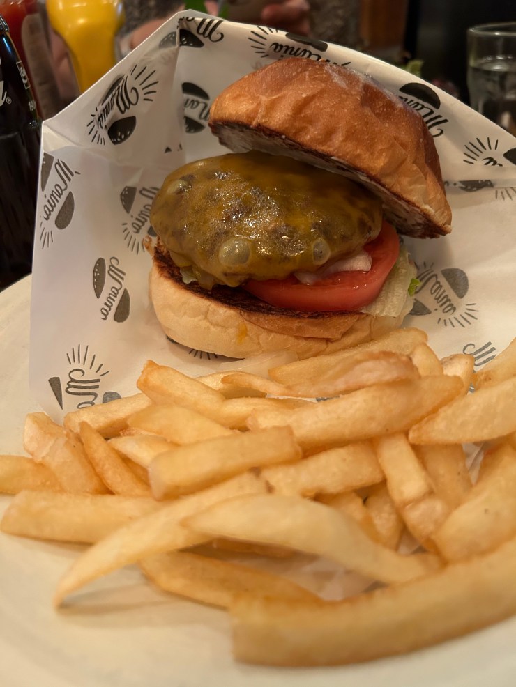 I started out simple. The cheeseburger. I could have chosen from a lot of different ones but went simple. Plus the Coke with the craft ice.