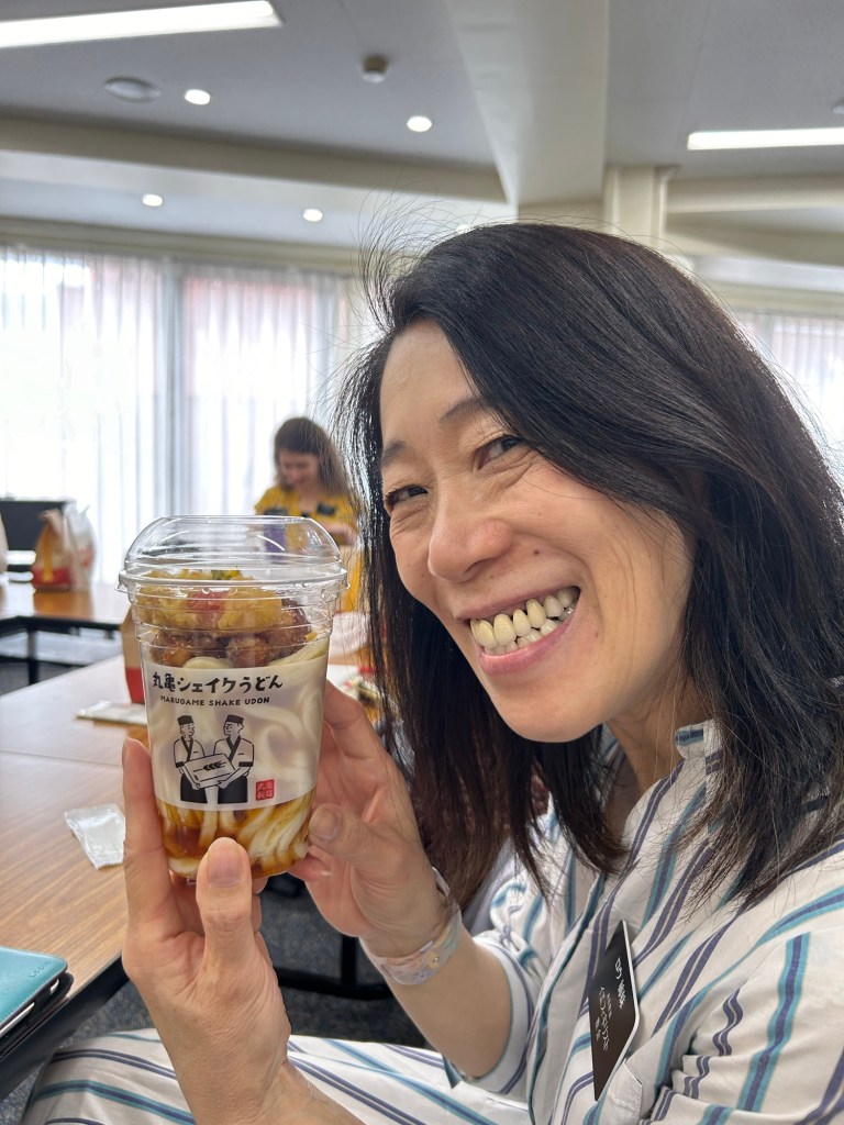 Then there’s her quick lunch favorite, for when we’re in a hurry. You know how she’s crazy about udon noodles. But have you ever heard of an “udon shake”? Well, we got ‘em here in Shibuya: