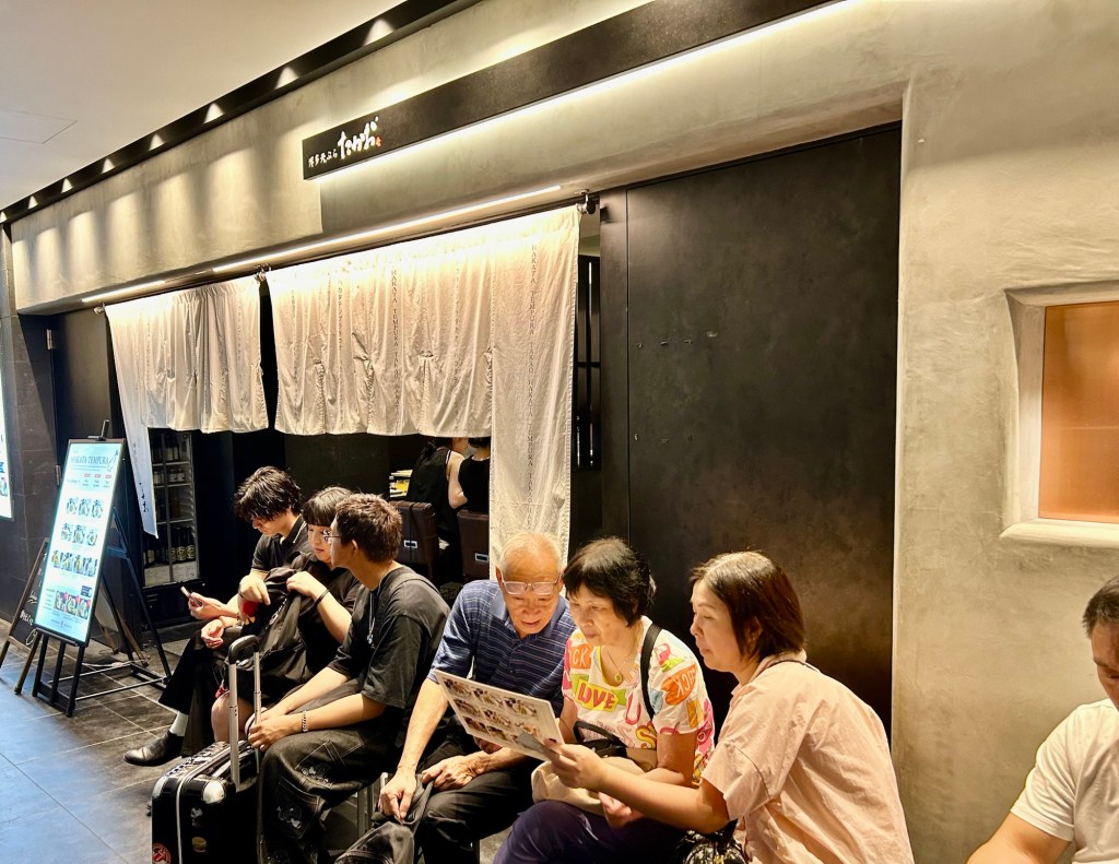 There was already a line. But it was only about 12 people, so we decided to get in line and wait. While we were waiting a staff member came out with a menu and started taking pre-orders. That’s when we learned there really isn’t a menu. They only serve one item, and you can get it with small, medium, or large rice. And for 100 more yen, you can have the cook add in an extra egg. That’s the whole menu.